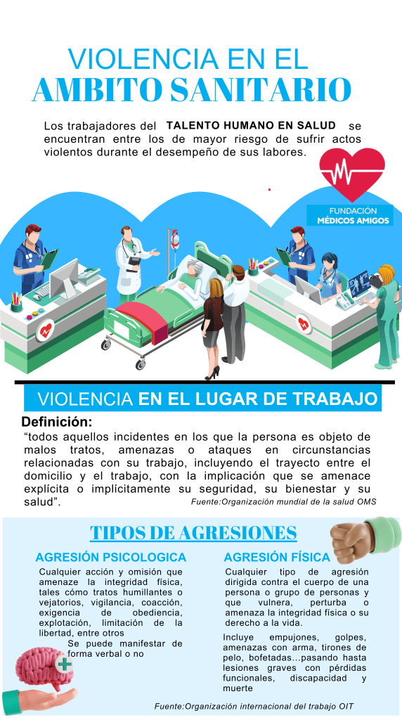 En la Fundación Médicos Amigos vemos con extrema preocupación el incremento de las agresiones al talento humano en salud, ocurridas en el ejercicio de su profesión y más aún nos preocupa las pobres garantías existentes que tenemos los trabajadores del gremio salud, expuestos a este tipo de conductas, por éste motivo hemos realizado una línea de tiempo que nos pone en contexto de la magnitud del problema que afrontamos, encontrando incluso muertes de colegas a manos de pacientes.